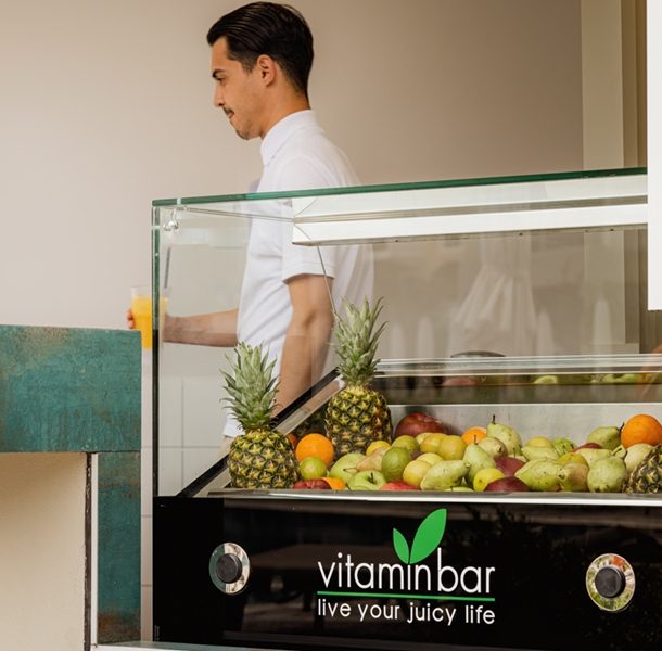 Beleben Sie Körper und Geist mit ein paar erfrischenden Bahnen in unserem 50 Meter langen Pool; lassen Sie die Seele baumeln und genießen Sie die Auswahl gesunder und leckerer Snacks und Drinks: köstliche Power-Salate und Sandwiches, frisches Obst und Joghurt mit Superfoods. Gesund und bewusst essen war noch nie so lecker!