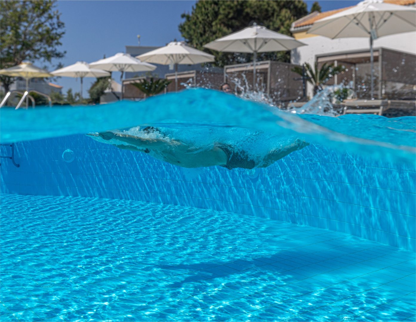 Θέλετε να απελευθερώσετε την καταπιεσμένη ένταση σας; Ή μήπως απλώς να γυμνάσετε το σώμα σας; Με καταπράσινο περιβάλλον και λωρίδες ολυμπιακών διαστάσεων, αυτή η πισίνα είναι το ιδανικό μέρος για εσάς. Υπάρχει επίσης μια πλαϊνή σκιασμένη παιδική πισίνα – που σημαίνει ότι μπορείτε να παρακολουθείτε τι κάνουν τα παιδιά σας ανάμεσα στους γύρους σας. Το Olympic pool bar, επιπλέον, προσφέρει διάφορα υγιεινά σνακ, δροσιστικούς φρέσκους χυμούς και ποτά για κάθε σας ανάγκη ή επιθυμία.