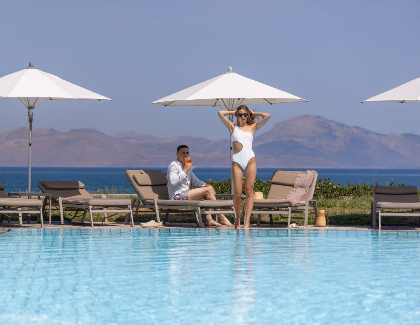 Just steps from the seashore, with sweeping Aegean vistas and a selection of luscious sun loungers this is the ideal spot to spend a leisurely summer day. Relax and soak up the atmosphere; enjoy great company and some downtime with a swim and a float before lunch or dinner. The Troja bar is mere meters away and serves an array of mouthwatering snacks, and light Mediterranean bites.