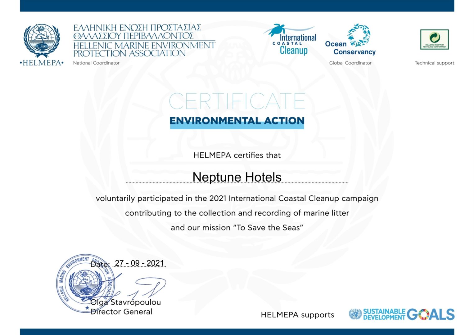 Our environmental responsibility is explicitly expressed in Neptune’s Sustainability Policy – and demonstrated in practice by the results that our targeted actions towards the most responsible and efficient operation of our hotel yield. Our goal is to reduce the use of natural resources, essentially contribute to the climate crisis and preserve our destination’s cultural and natural heritage for locals and visitors.